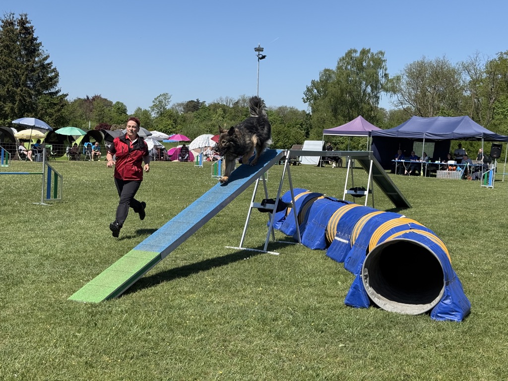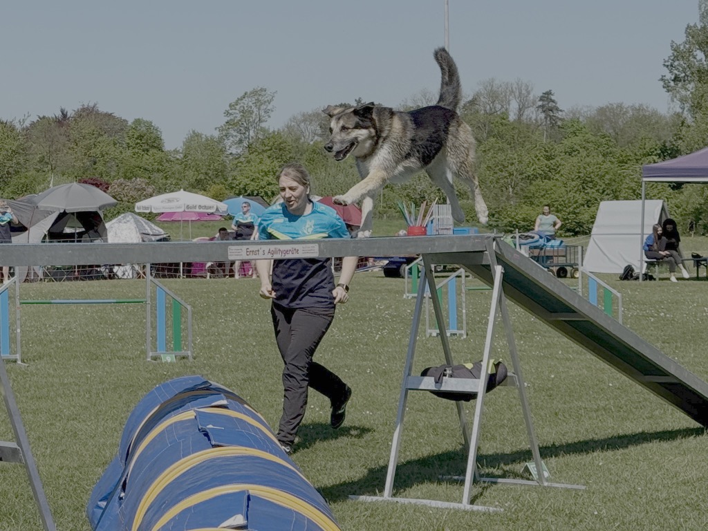 Die Läufe um den Ulmer Münstercup in der Klasse A3 war wieder einmal denkbar knapp. Mehrere Starter hatten im A-Lauf und im Jumping 0-Fehler. Daher musste in der Kombi-Wertung die Laufgeschwindigkeit der Hunde berücksichtigt werden – das schnellste fehlerfreie Team und damit Gewinnerin vom Ulmer Münster Cup 2025 war: